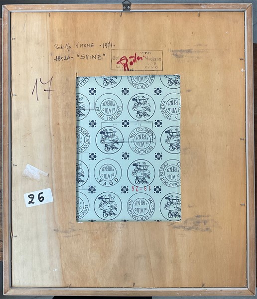 Lotto composto da tre piccoli dipinti cm 24x18: Mario Fusco "Frammento 1" 196