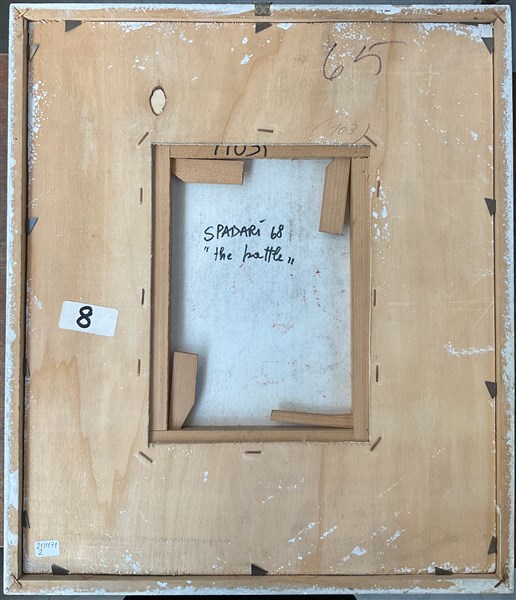 Giangiacomo Spadari "The Battle" 1968 acrilico su tela cm 24x18 firmato, datato