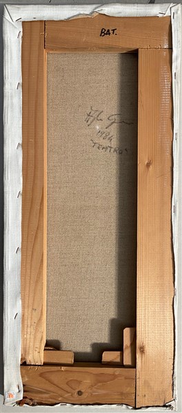 Angelo Cagnone "Teatro" 1984 tecnica mista su tela cm 65x30 firmato, datato e ti