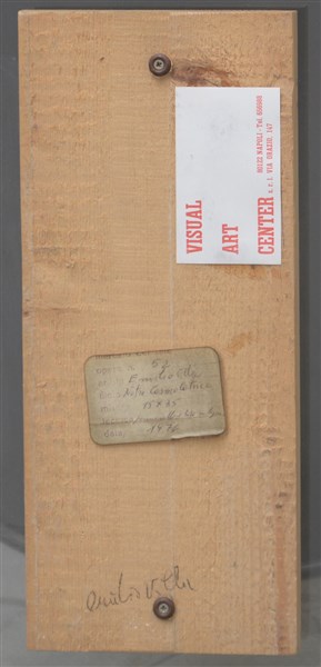 Emilio Villa "Notre Cosmolatrie" 1974 iscrizioni su tavoletta in legno cm 35x15