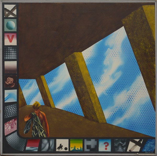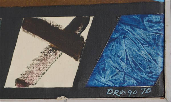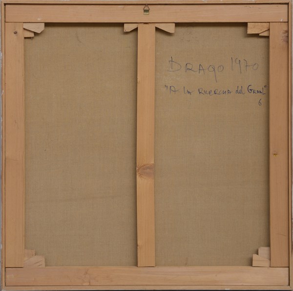 Drago "Alla ricerca del Graal 6" 1970 acrilico su tela cm 75x75 firmato e datato