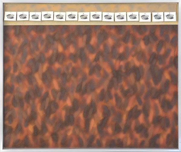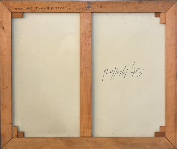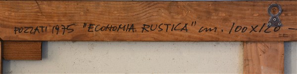Concetto Pozzati "Economia rustica" 1975 tecnica mista e assemblage su tela cm 1