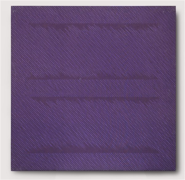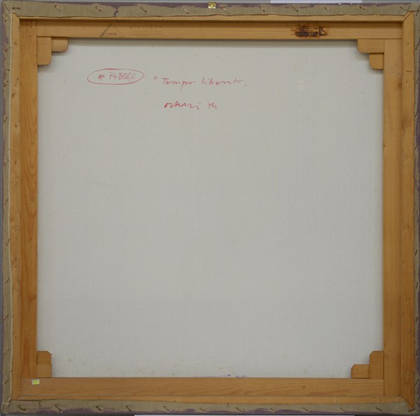 Gottardo Ortelli "Tempo liberato" 1974 acrilico su tela cm 95x95 titolato, firma