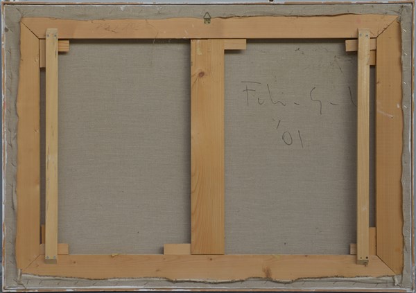 Federico Guida "Sit" 2001 olio su tela cm 75x105 firmato e datato al retro. In c