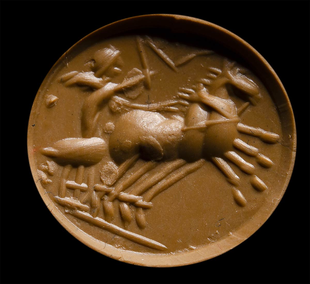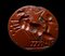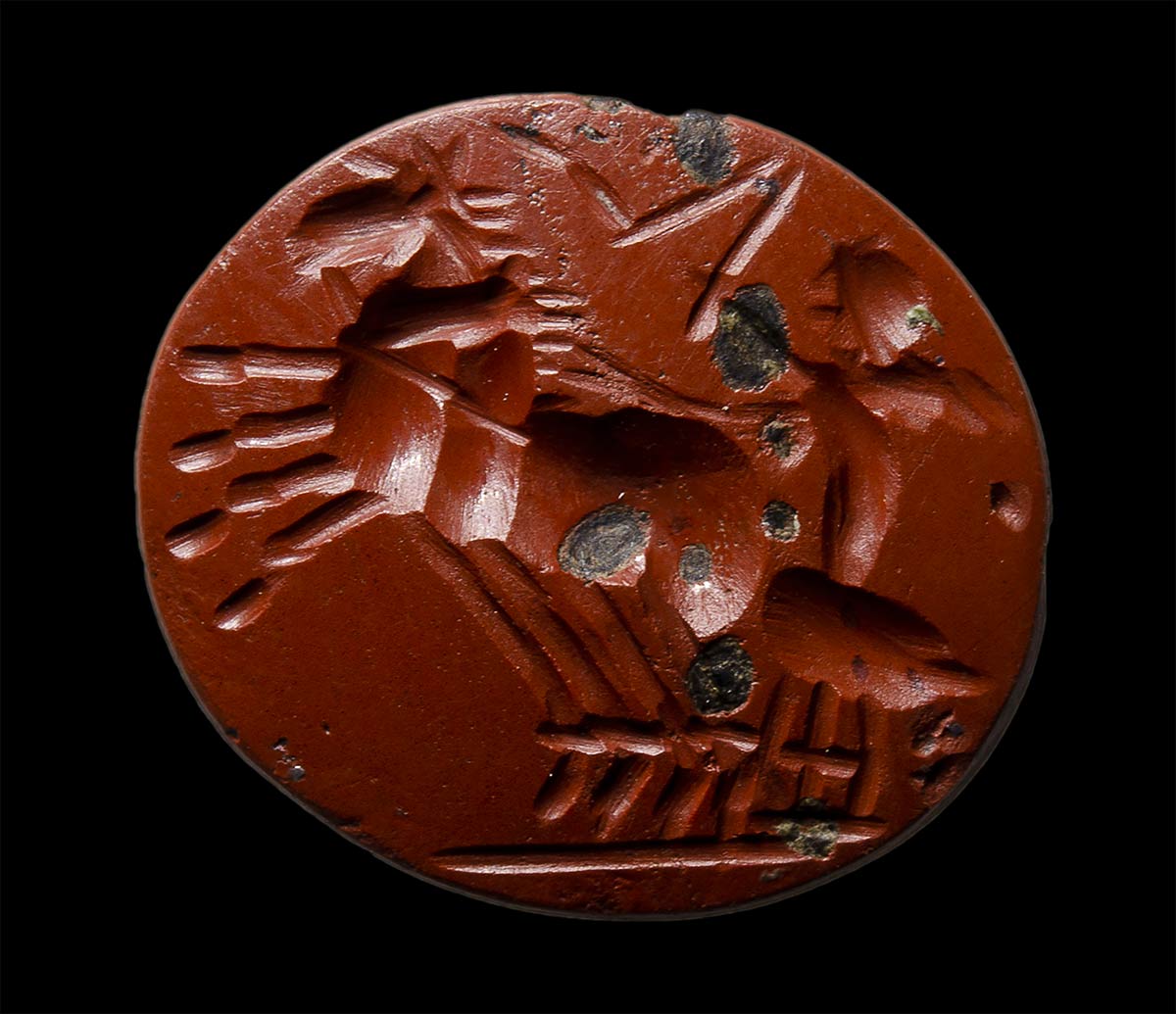 The winged eros is standing on a chariot, riding a biga and holding a whip in his right hand. Groundline.