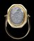 A roman chalcedony intaglio set in later gold swivel ring. Dancing satyr.