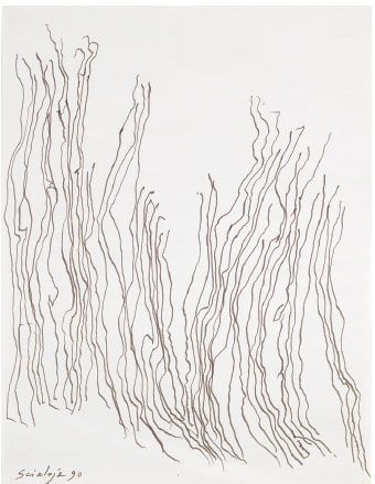 Toti Scialoja Roma 1914 - 1998 Senza titolo, 1990 China su carta, cm. 40x30 Firma e data in basso a sinistra: Scialoja 90. Al verso su un cartone di supporto: etichetta Galleria Open Art, Prato. Certificato su foto Fondazione Toti Scialoja, Roma, 25/2/2005, con n. 019005. Bibliografia: Mauro Pratesi, Toti Scialoja "Anni 90", catalogo della mostra, Prato, Galleria Open Art, 2001, p. 5.