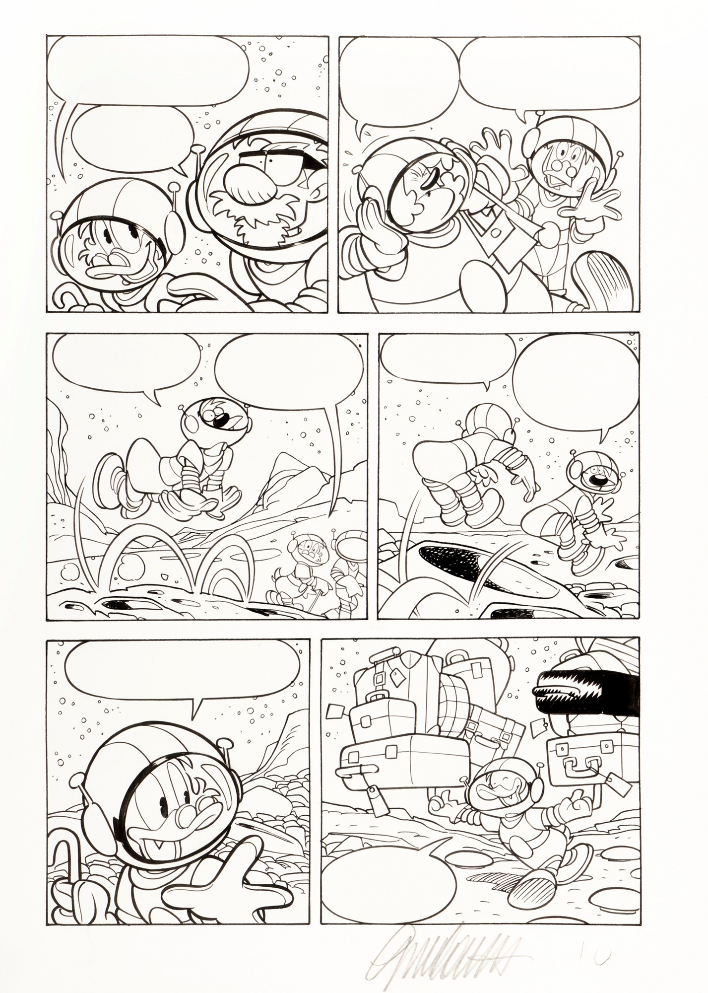 Tavola originale realizzata da Cavazzano per "Zio Paperone e i dieci piccoli miliardari", edita su Topolino n. 2984 a pag. 10 nel Febbraio 2013. Firmata.