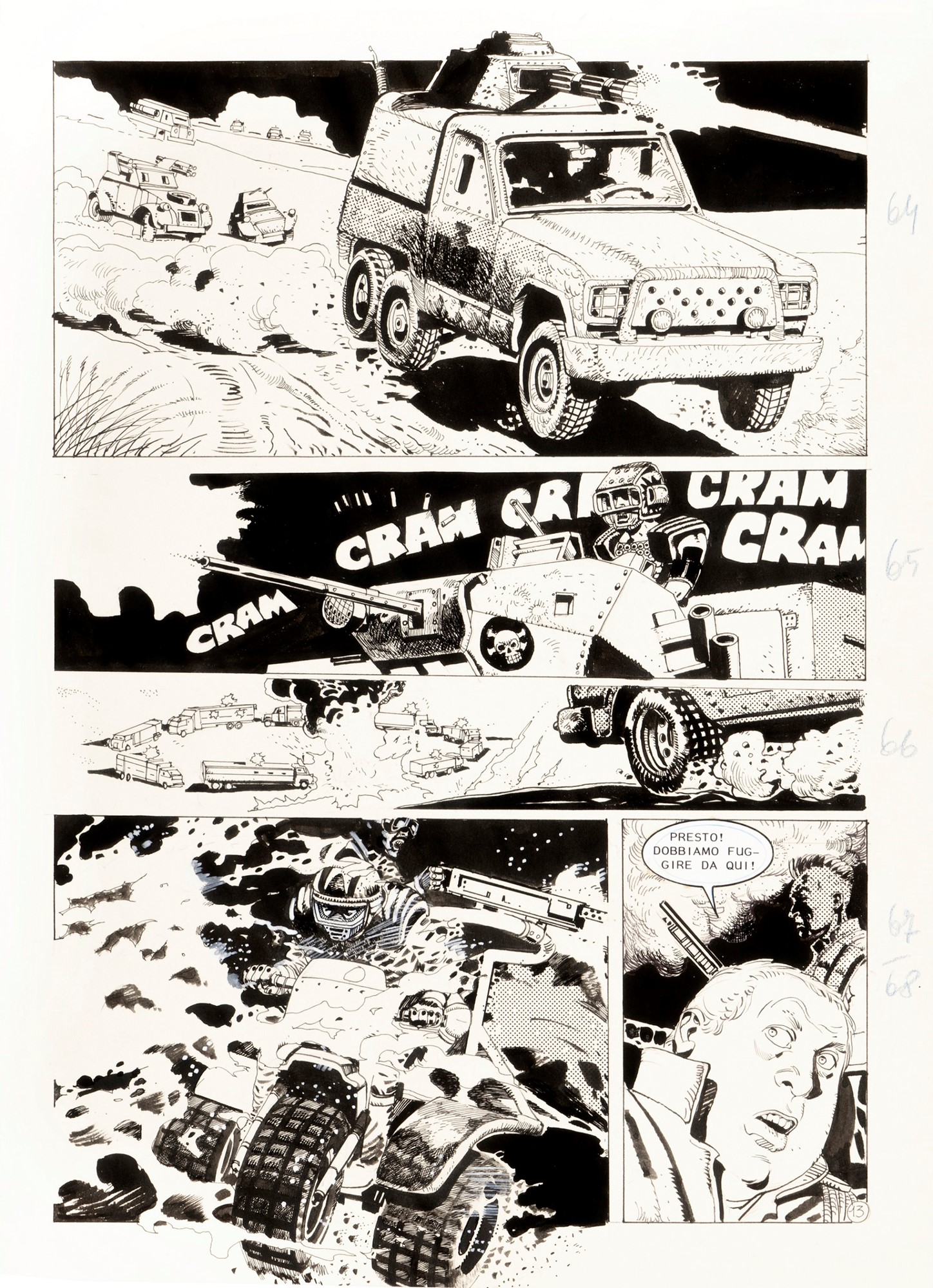 Tavola originale realizzata da Duran per la pag. 13 di questa avventura d'ambientazione post apocalittica edita su Lanciostory nel 1985.