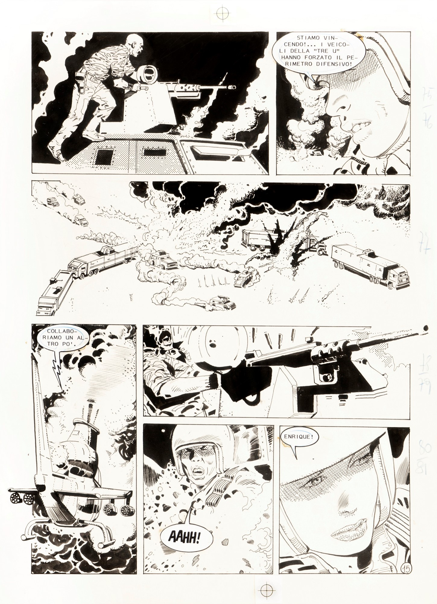 Tavola originale realizzata da Duran per la pag. 15 di questa avventura d'ambientazione post apocalittica edita su Lanciostory nel 1985.