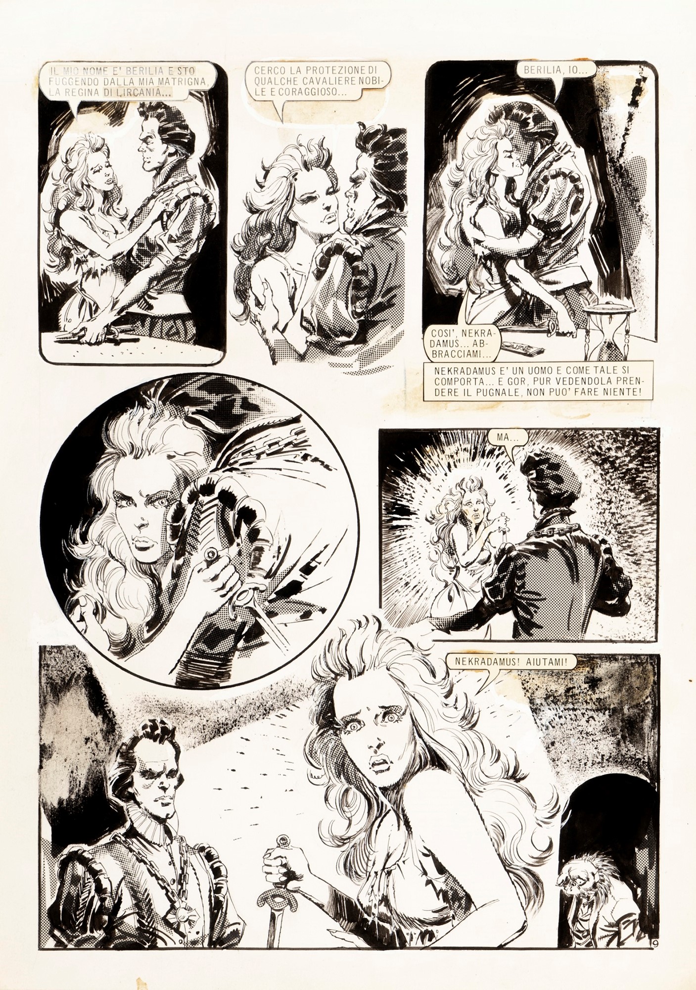Tavola originale realizzata da Lalia per la pag. 9 di "De venenos crueles y dagas malditas", episodio della celebre saga gotica Nekradamus edita per la prima volta in Argentina su Skorpio Libro de Oro n. 2 nel dicembre del 1976. Testi di Héctor G. Oesterheld.