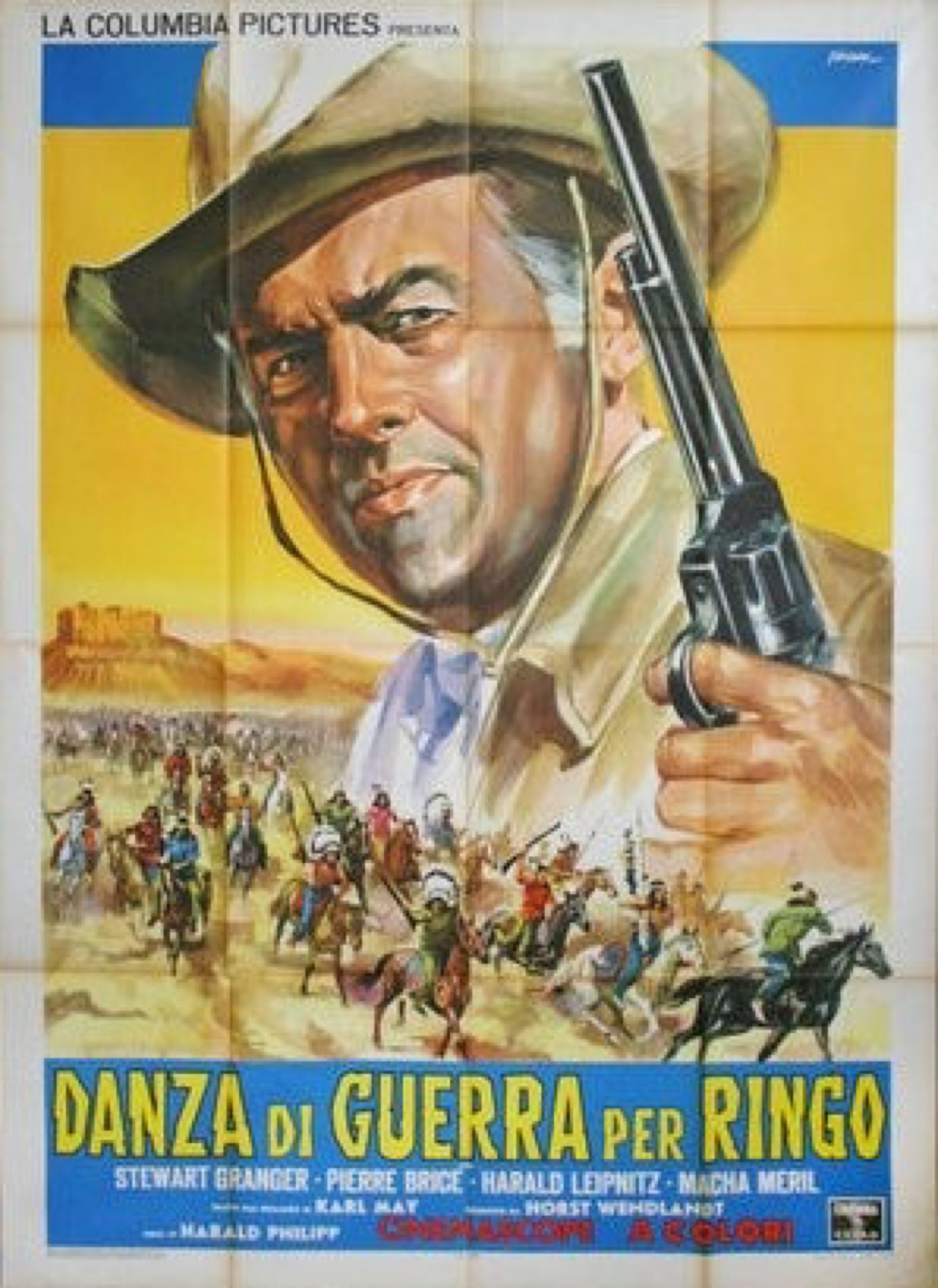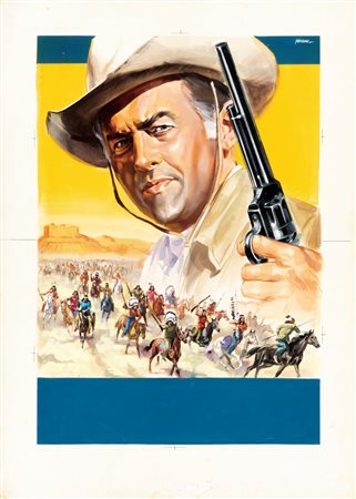 Bozzetto originale realizzato da Piovano per la locandina ufficiale del film "Danza di guerra per Ringo", diretto da Harald Philipp con Stewart Granger, Macha Méril e Terence Hill nel 1965. Firmato.