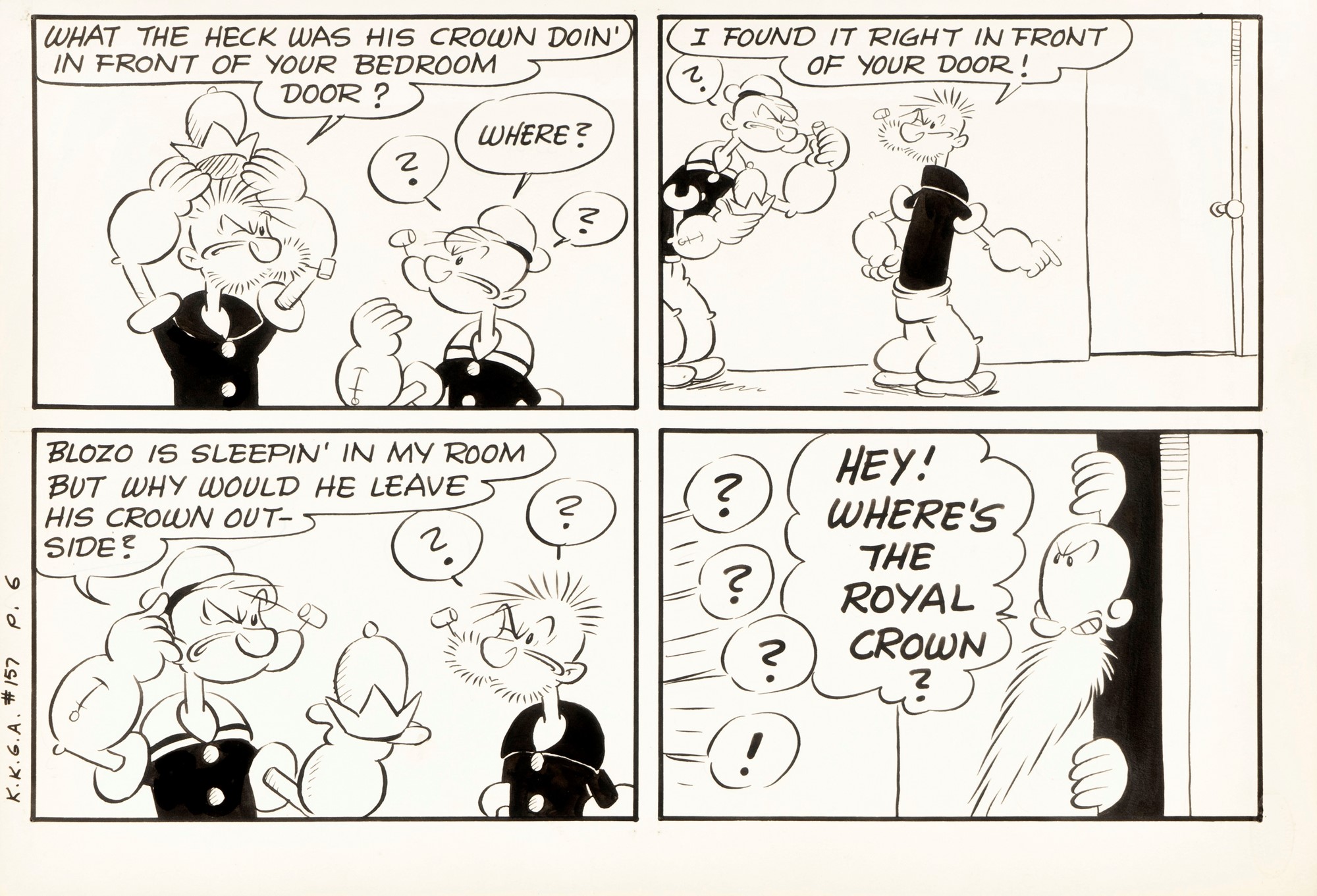 Tavola originale realizzata da Sagendorf per "House Boat", avventura in formato comic book orizzontale di Popeye pubblicata su Boys' and Girls' March of Comics n. 157 a pag. 6 dalla K.K. Publications nel 1957.
