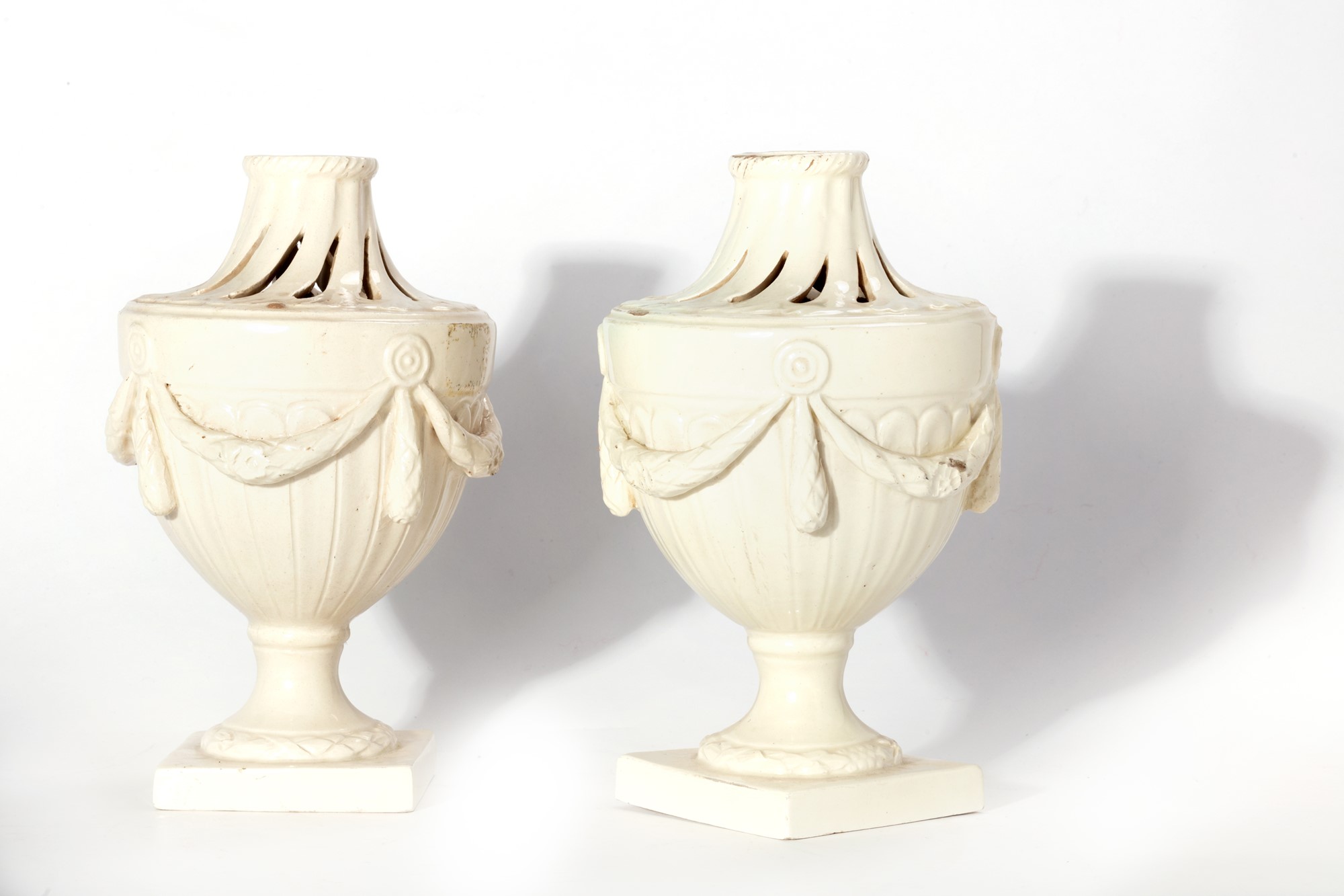 Coppia di vasi in maiolica bianca, fine secolo XIX - inizi secolo XX