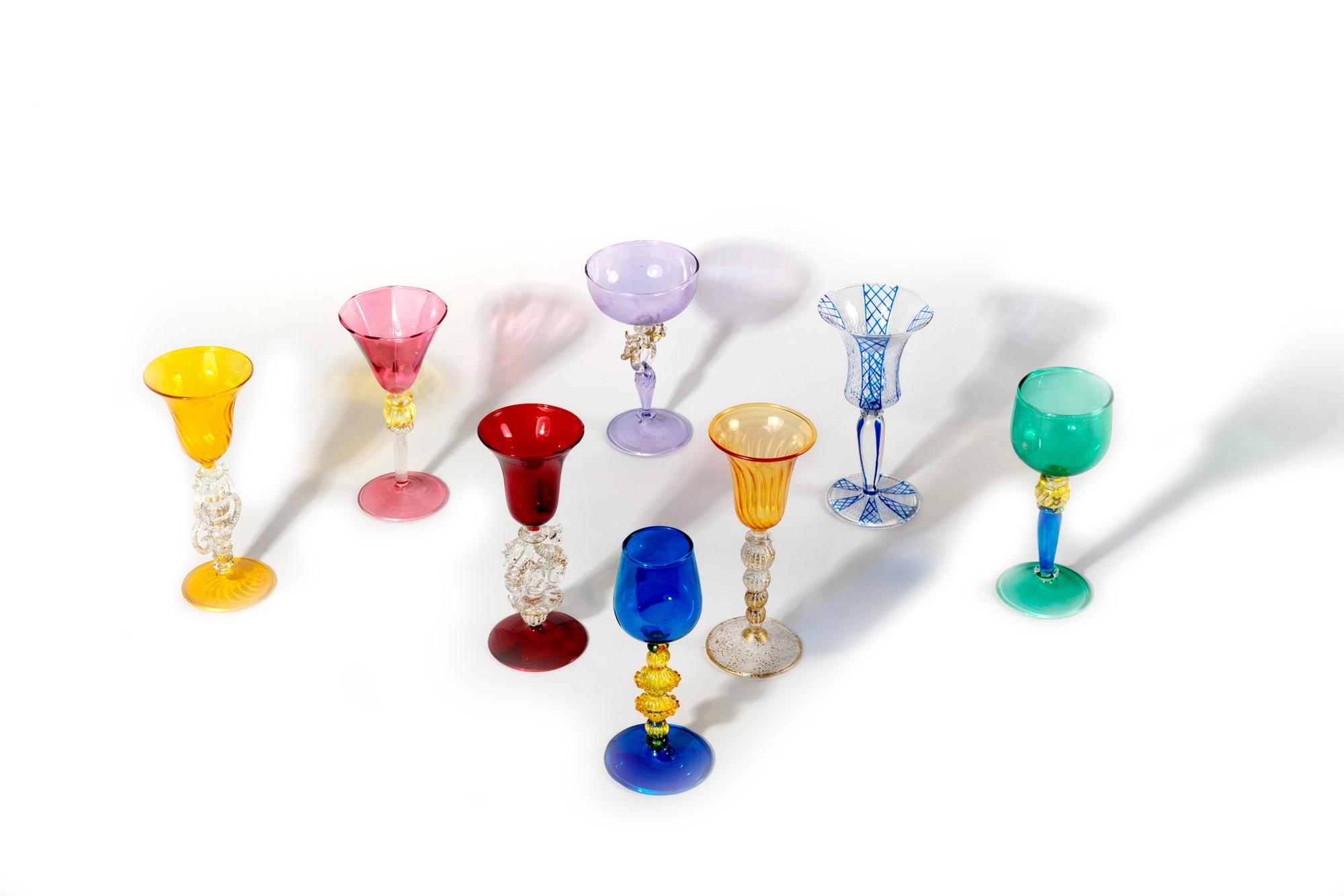 Lotto composto da otto bicchierini da collezione in vetro colorato