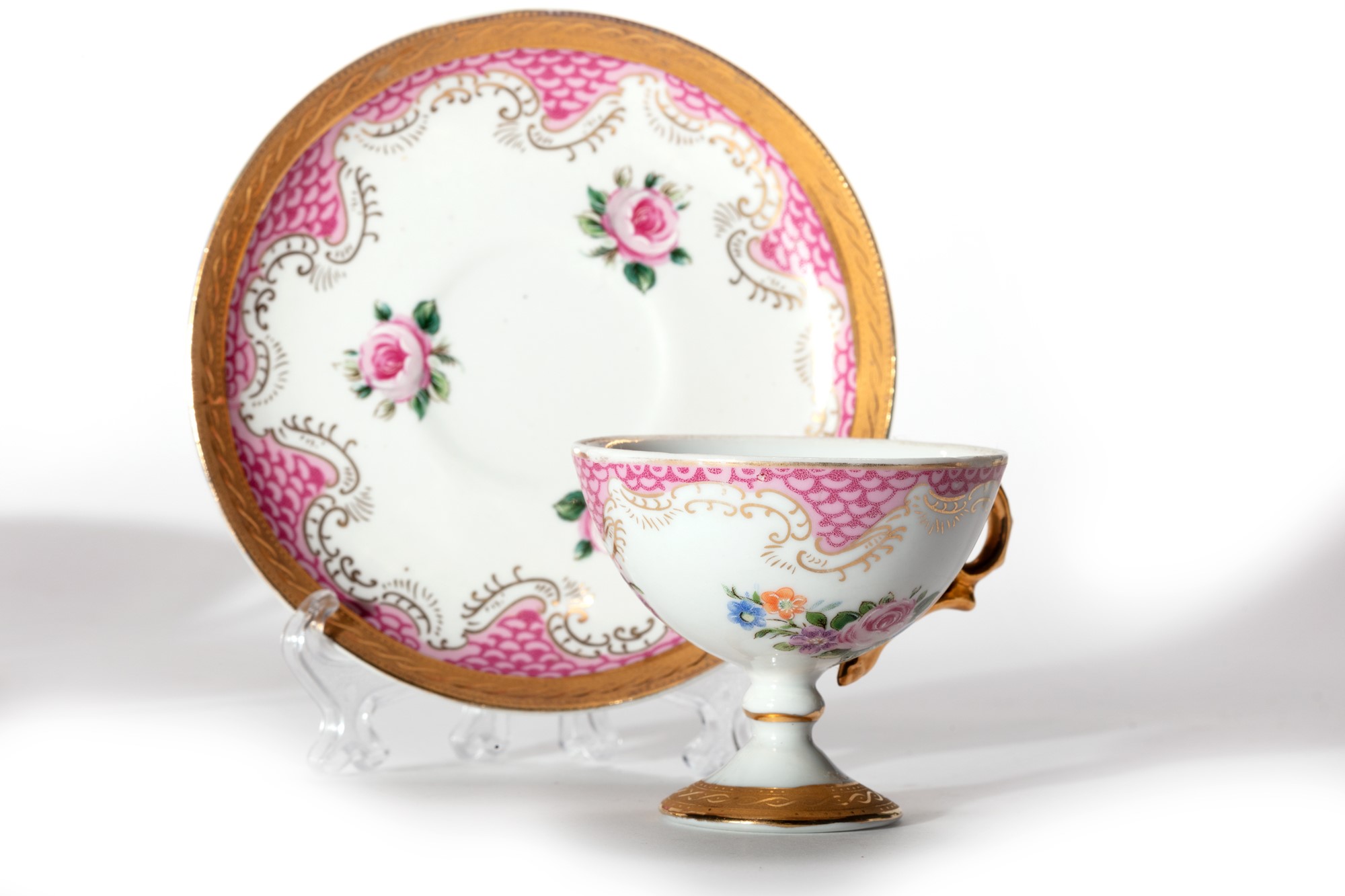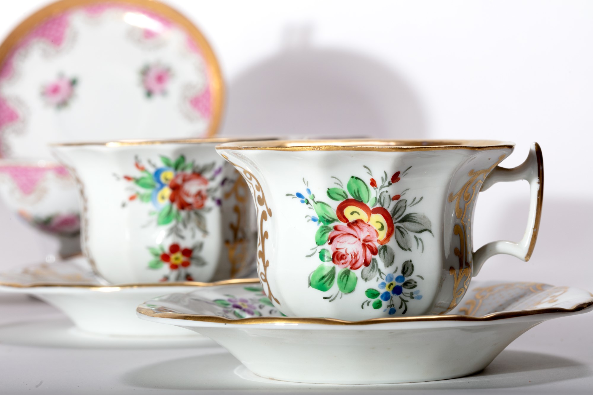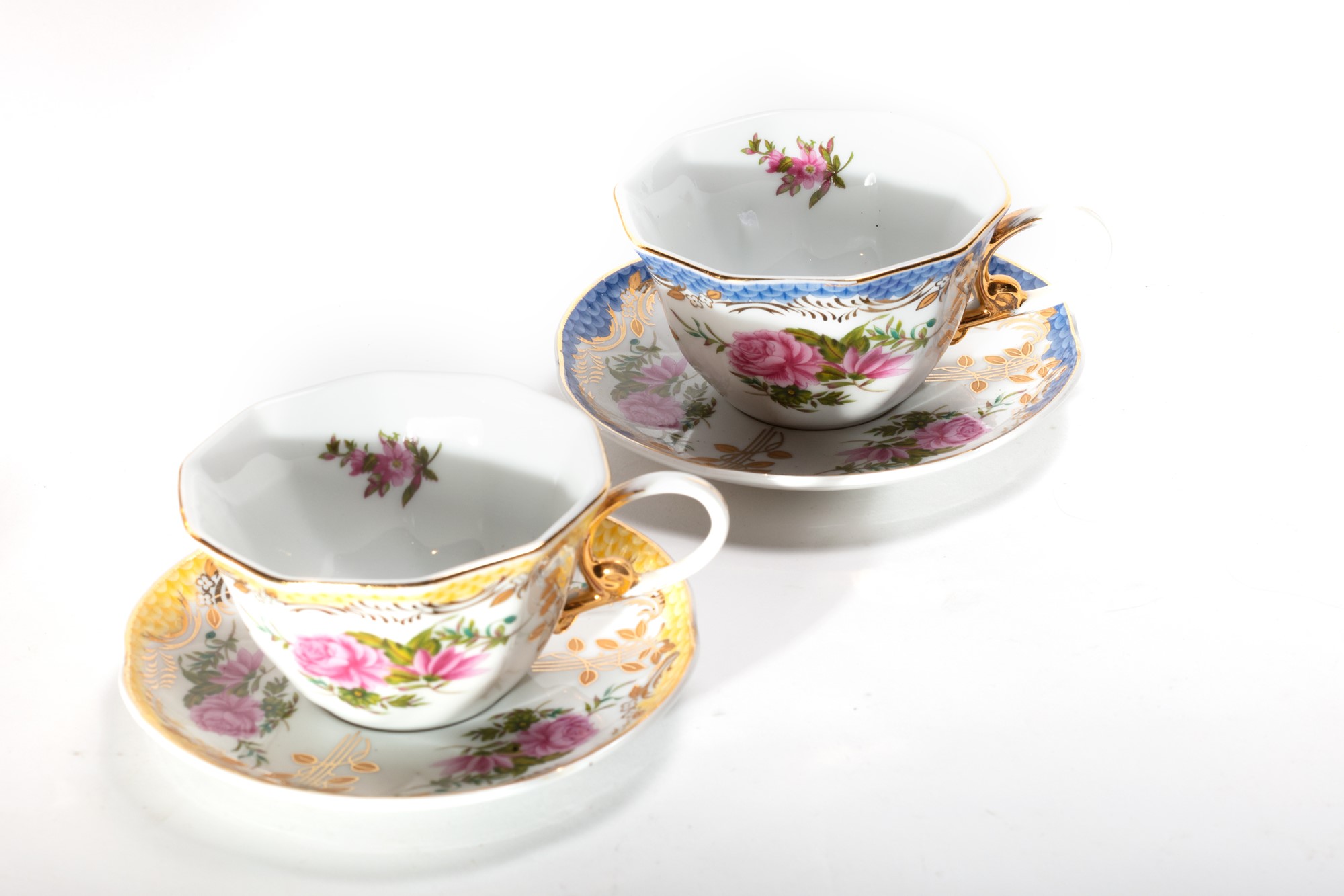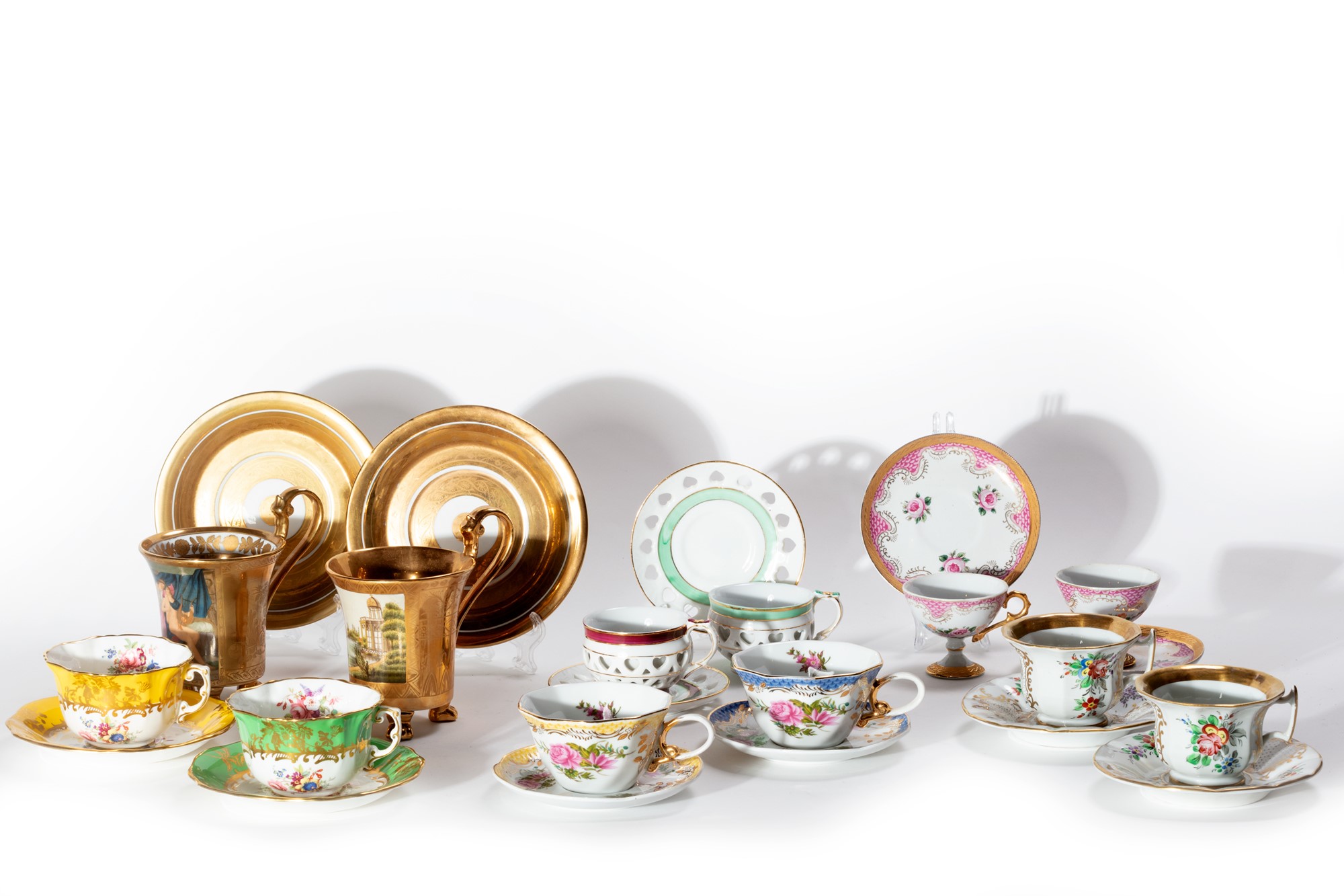Lotto di 12 tazzine con piattino in porcellana, secolo XX
