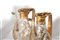 una coppia con dorature e una singola in vetro soffiato e applicazioni in pasta vitrea verdeuna coppia con dorature e una singola in vetro soffiato e applicazioni in pasta vitrea verde
