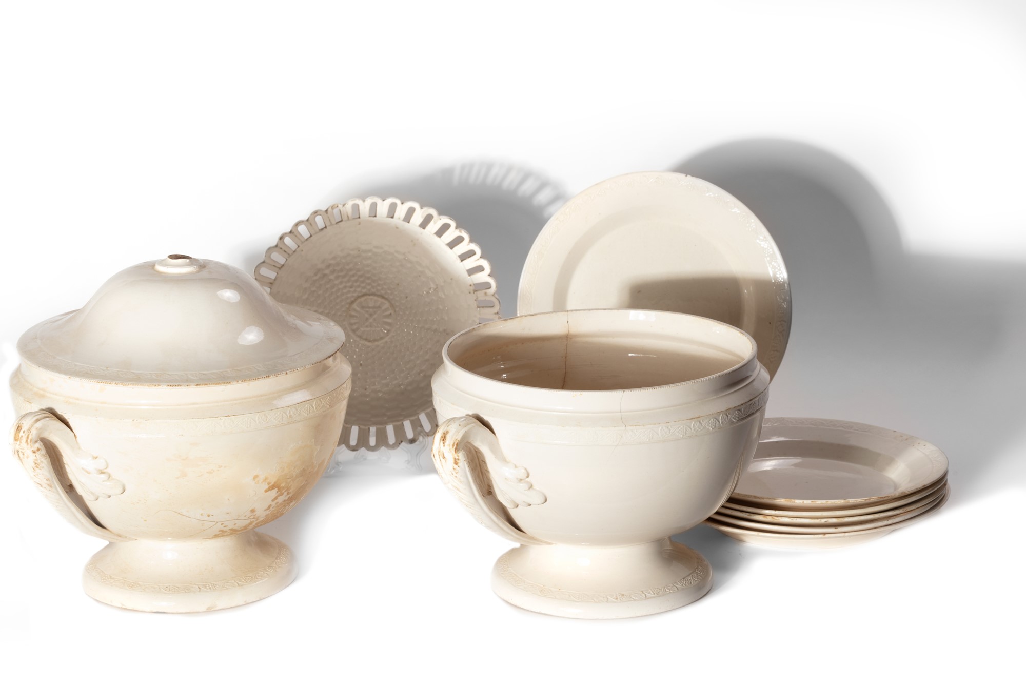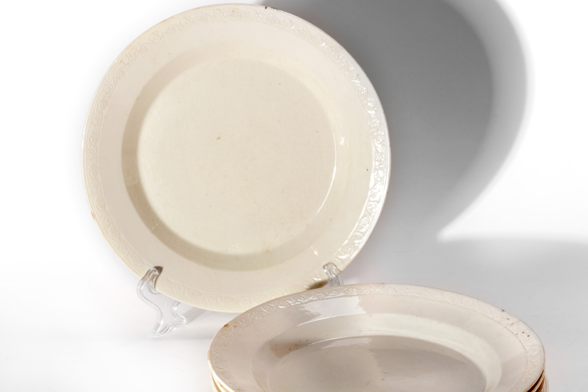 di cui 8 manifattura Giustiniani e un piatto con bordo traforato di manifattura Del Vecchiodi cui 8 manifattura Giustiniani e un piatto con bordo traforato di manifattura Del Vecchio