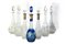 Sette bottiglie in cristallo, tre con collo in argento