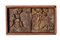 Antico bassorilievo in legno raffigurante satiro e pecorella entro paesaggio