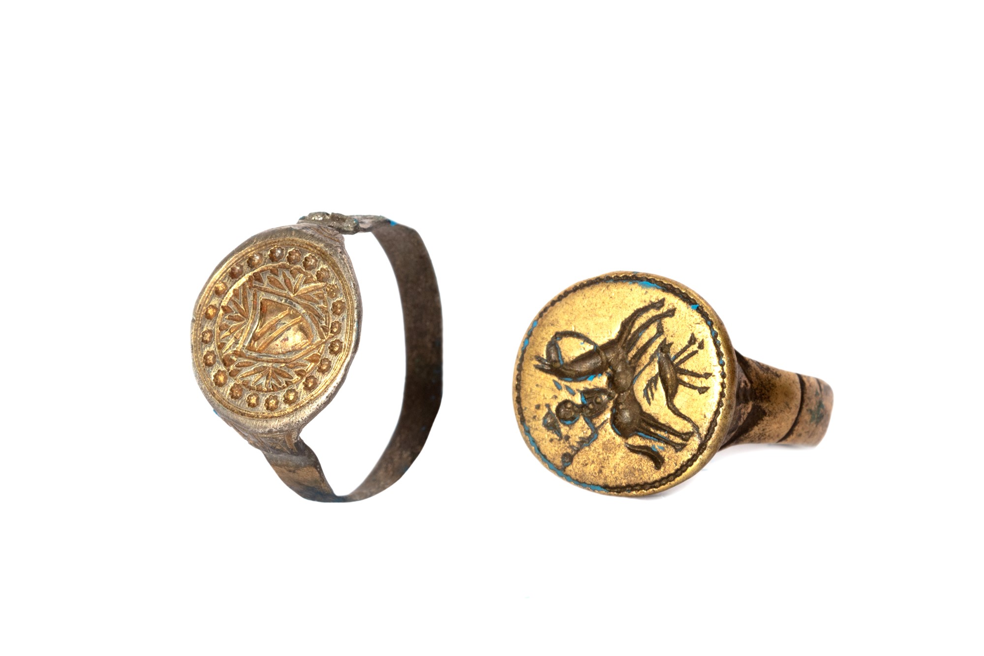 Due antichi anelli in bronzo, con sigilli