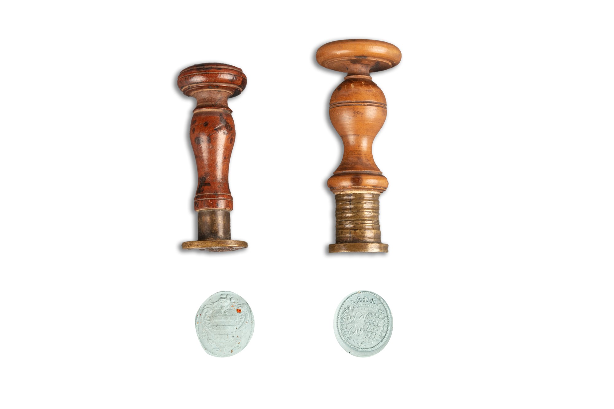 Lot 569 | Due sigilli in bronzo, con manico in legno tornito e stemmi nobiliari, secoli XVIII - XIX