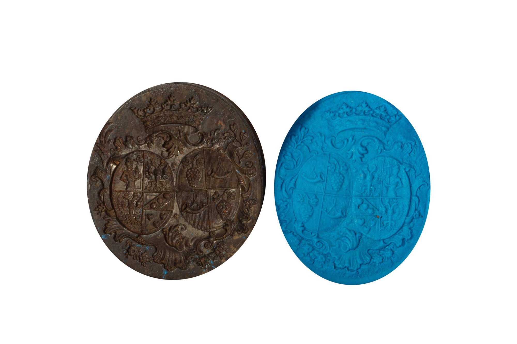 uno con due stemmi sormontati da coronauno con due stemmi sormontati da corona