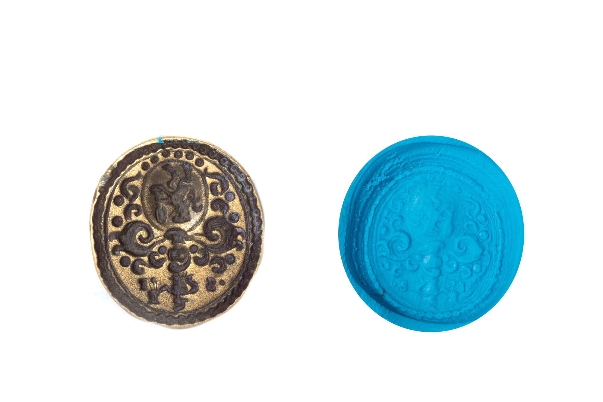 altezza totale cm 3,6 (il più grande ) e cm 1,8 (il più piccolo); cm 2 x 1,8 (il sigillo più grande) cm 1,7 x 1,6 (il sigillo più piccolo)