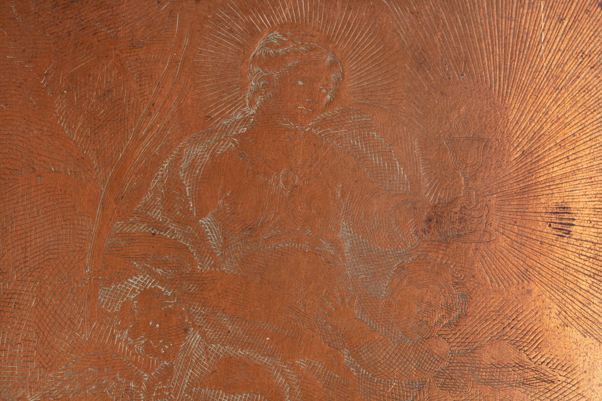 la placca più grande in bronzo dorato raffigurante Madonna con Bambino entro cartiglio; una placca ovale raffigurante Compianto di Cristo; la lastra da incisione raffigurante Madonna Assunta in contropartela placca più grande in bronzo dorato raffigurante Madonna con Bambino entro cartiglio; una placca ovale raffigurante Compianto di Cristo; la lastra da incisione raffigurante Madonna Assunta in controparte