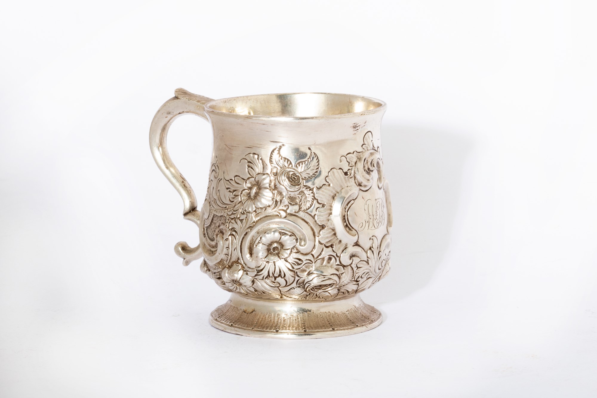 Bicchiere in argento finemente cesellato con manico, Inghilterra secolo XVIII