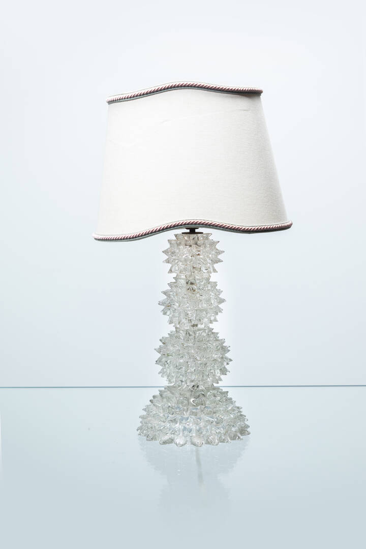 Lot 1 Next Sant’Agostino - Corso Tassoni 56, 10144 Torino Asta 192 Sessione unica Monday 8 November 2021 hours 16:00 (UTC +01:00) ERCOLE BAROVIER ERCOLE BAROVIERLampada in vetro rostrato trasparente.Anni '40h cm 37