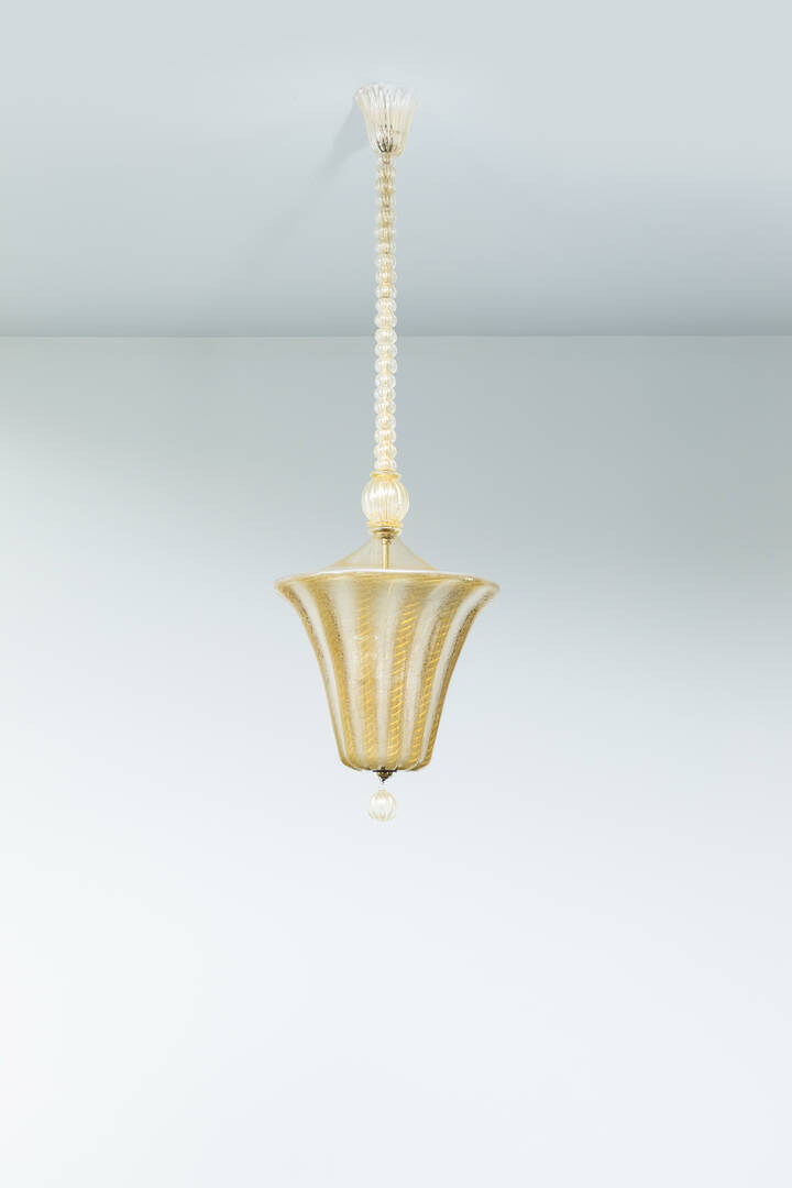 Lampadario in vetro cordonato con inclusione di foglia d'oro.