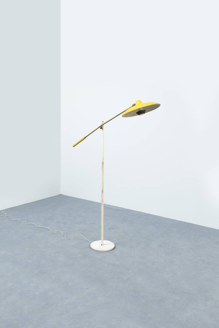 Lampada da terra in metallo verniciato e ottone. Base in marmo.