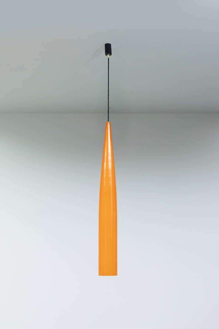 Lampada a sospensione in vetro colorato e incamiciato opalino.