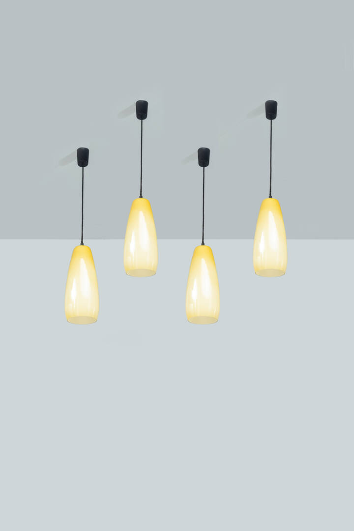 Previous Lot 77 Next Sant’Agostino - Corso Tassoni 56, 10144 Torino Asta 192 Sessione unica Monday 8 November 2021 hours 16:00 (UTC +01:00) VENINI VENINIQuattro lampade a sospensione in vetro incamiciato.Anni '50h cm 36