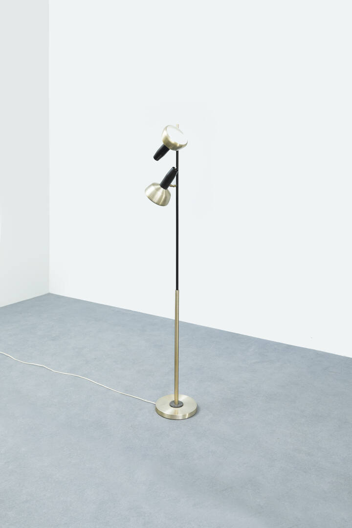 Lampada da terra in metallo verniciato e acciaio satinato.