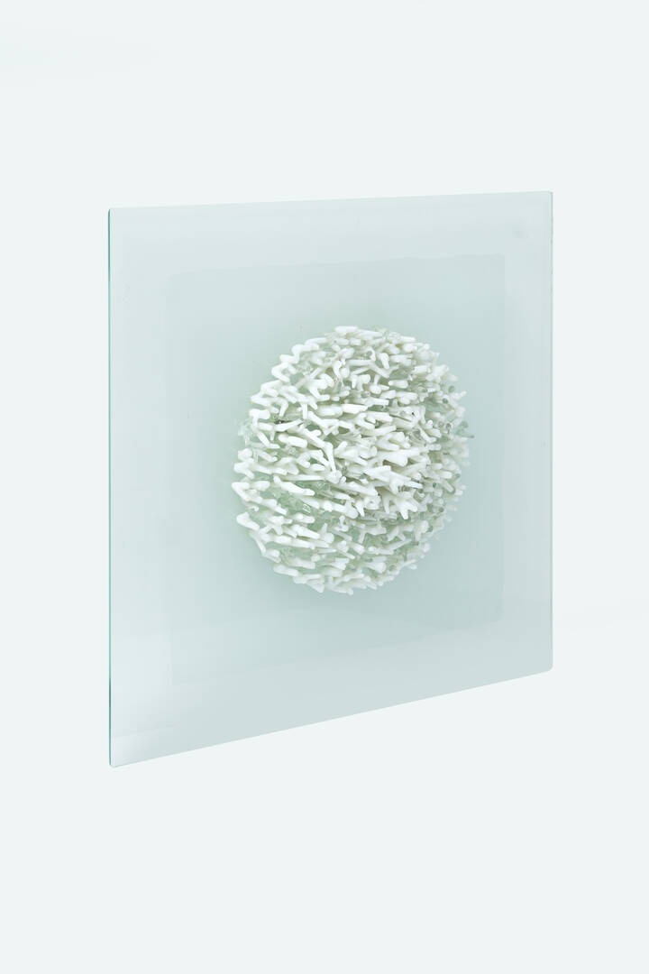 Pannello decorativo retro illuminato con parte centrale costituita da elementi in vetro trasparente Anni '70