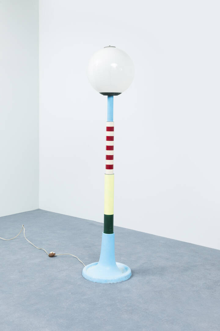 Lampada da terra in metallo verniciato, diffusore in vetro.