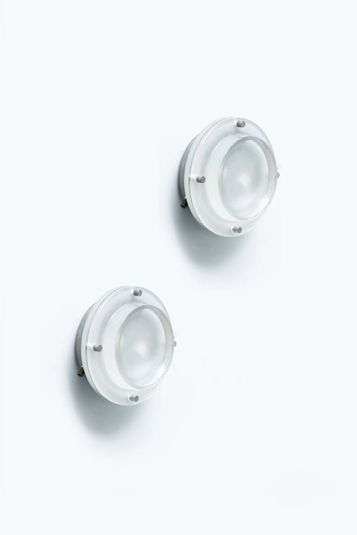 Coppia di lampade con vetro trasparente battuto, struttura in metallo.