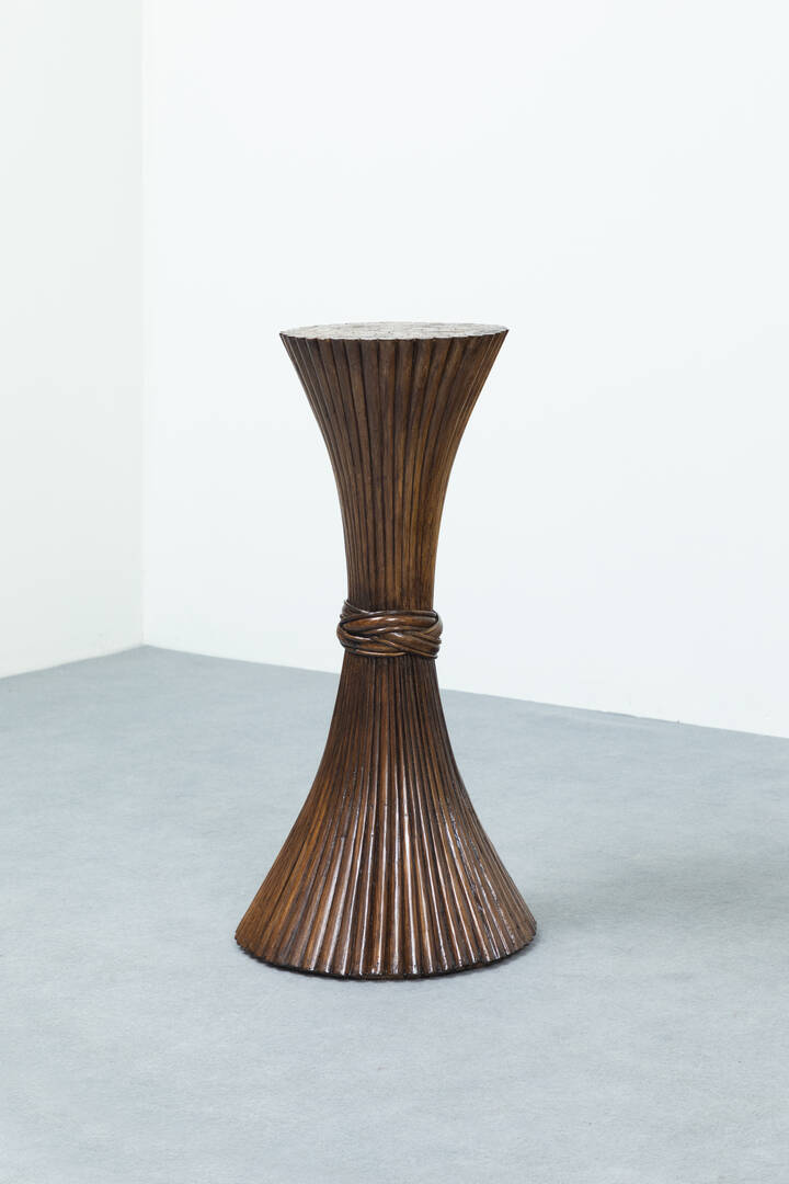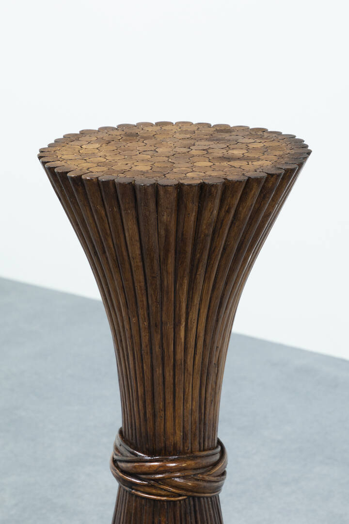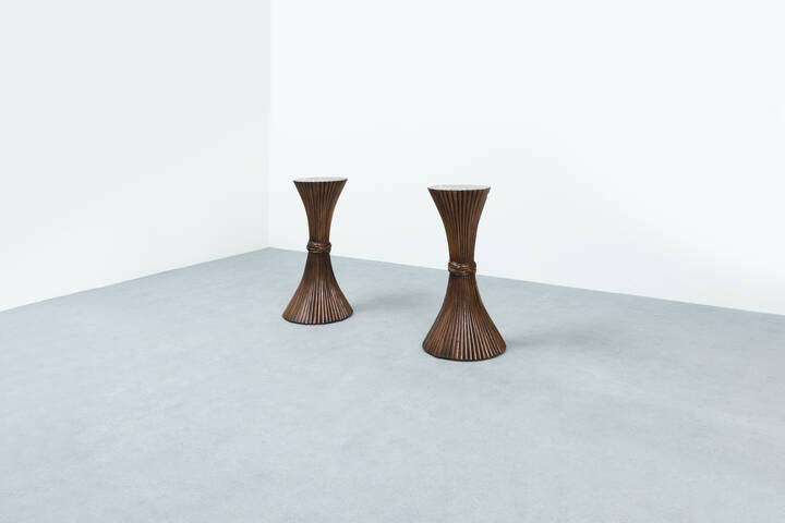 Coppia di alzate in bamboo lavorato a simulare una fascina trattenuta da nastro.