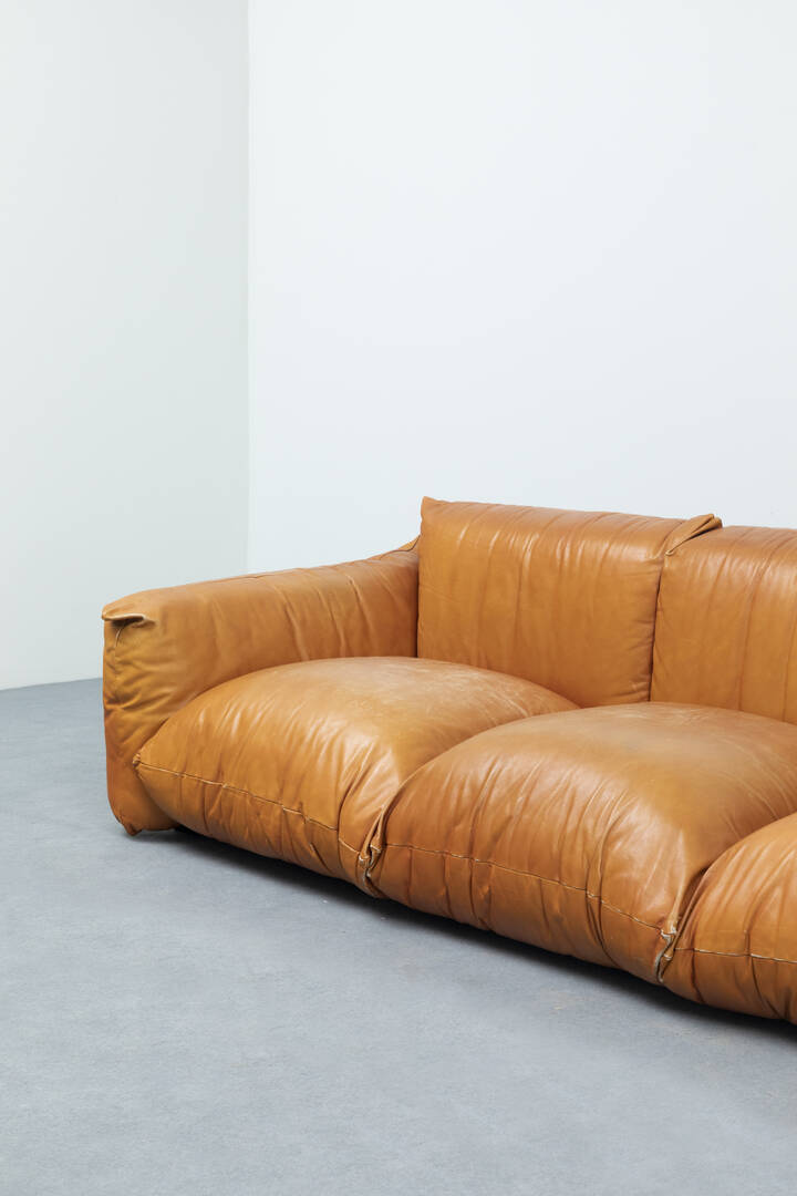 Struttura portante in profilato metallico, imbottitura in schiuma poliuretanica rivestita in pelle.