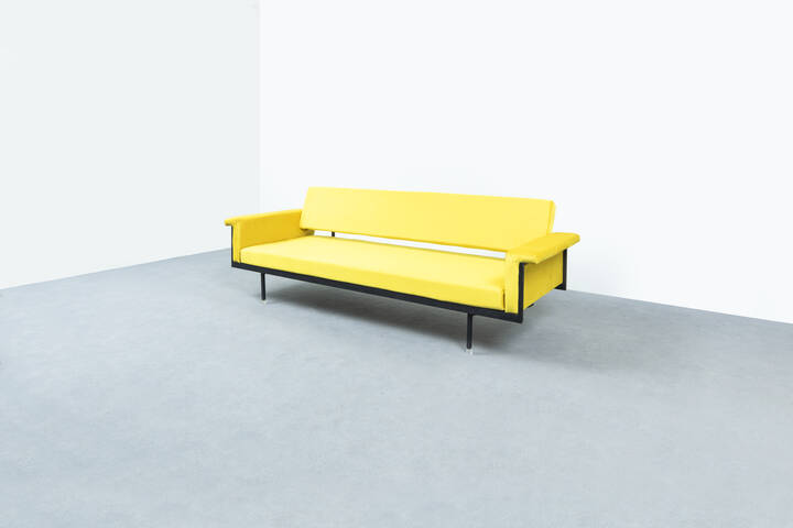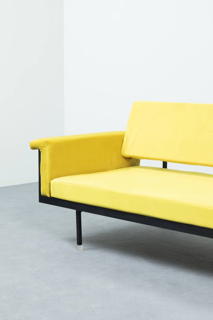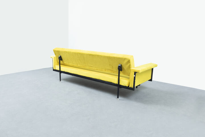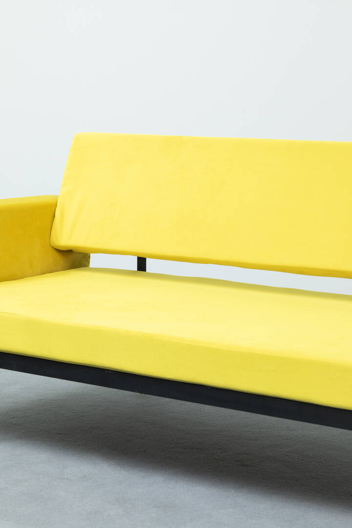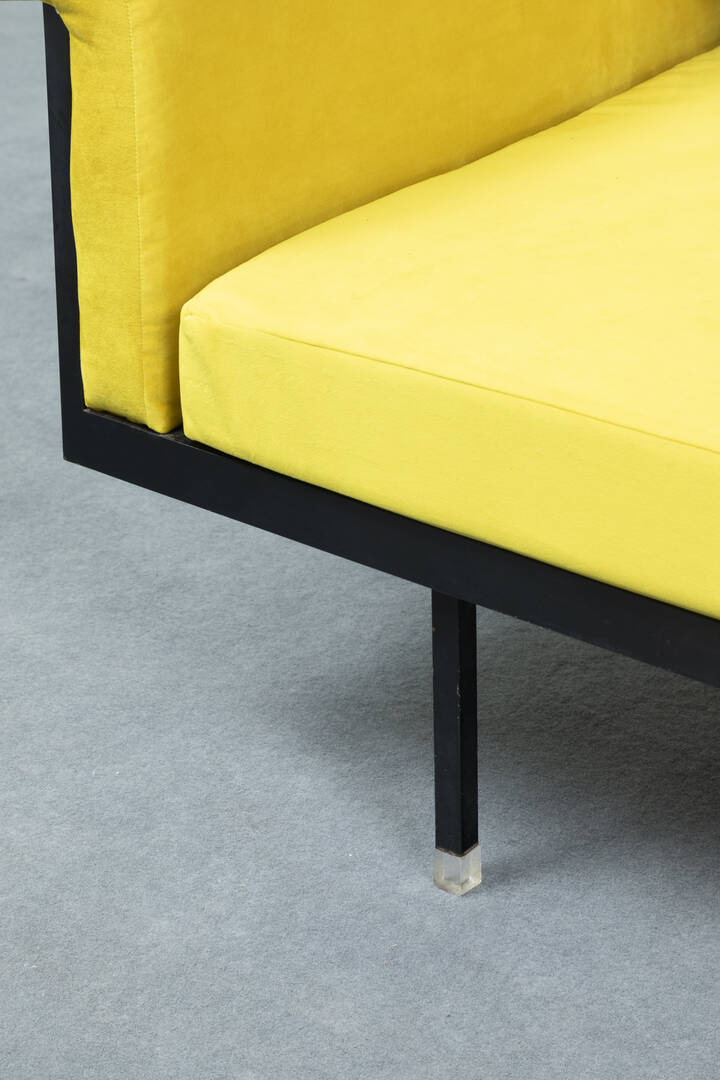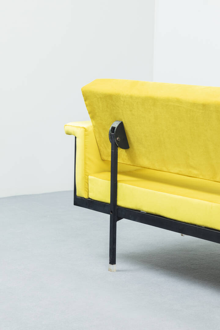 Struttura in metallo verniciato, imbottitura rivestita in tessuto.