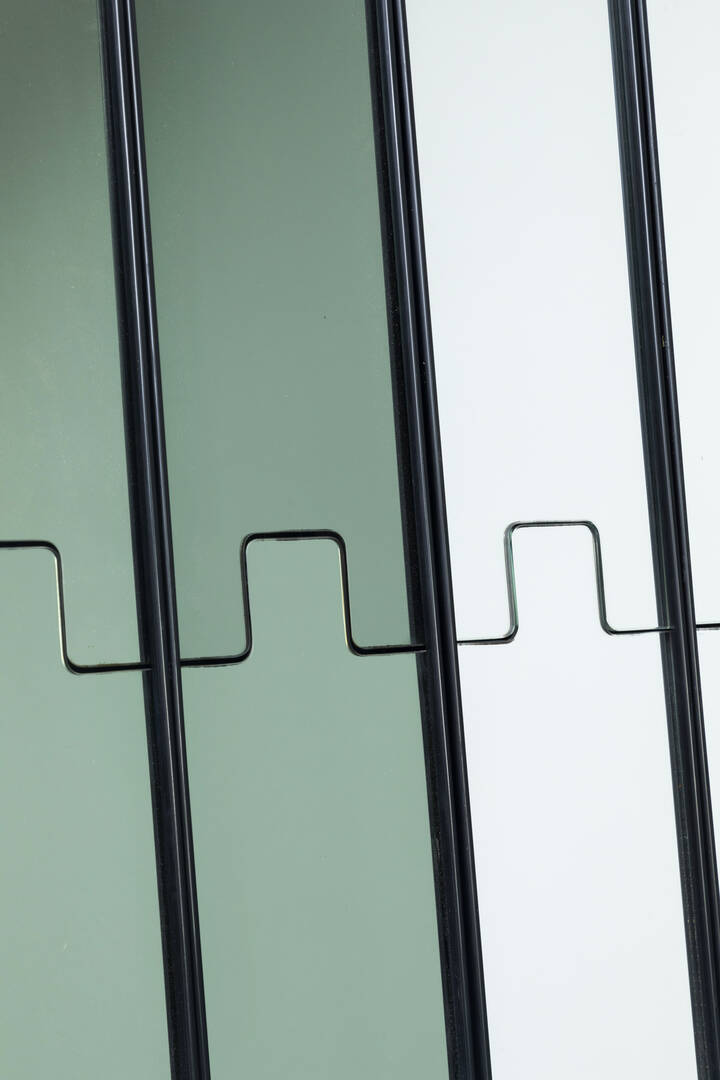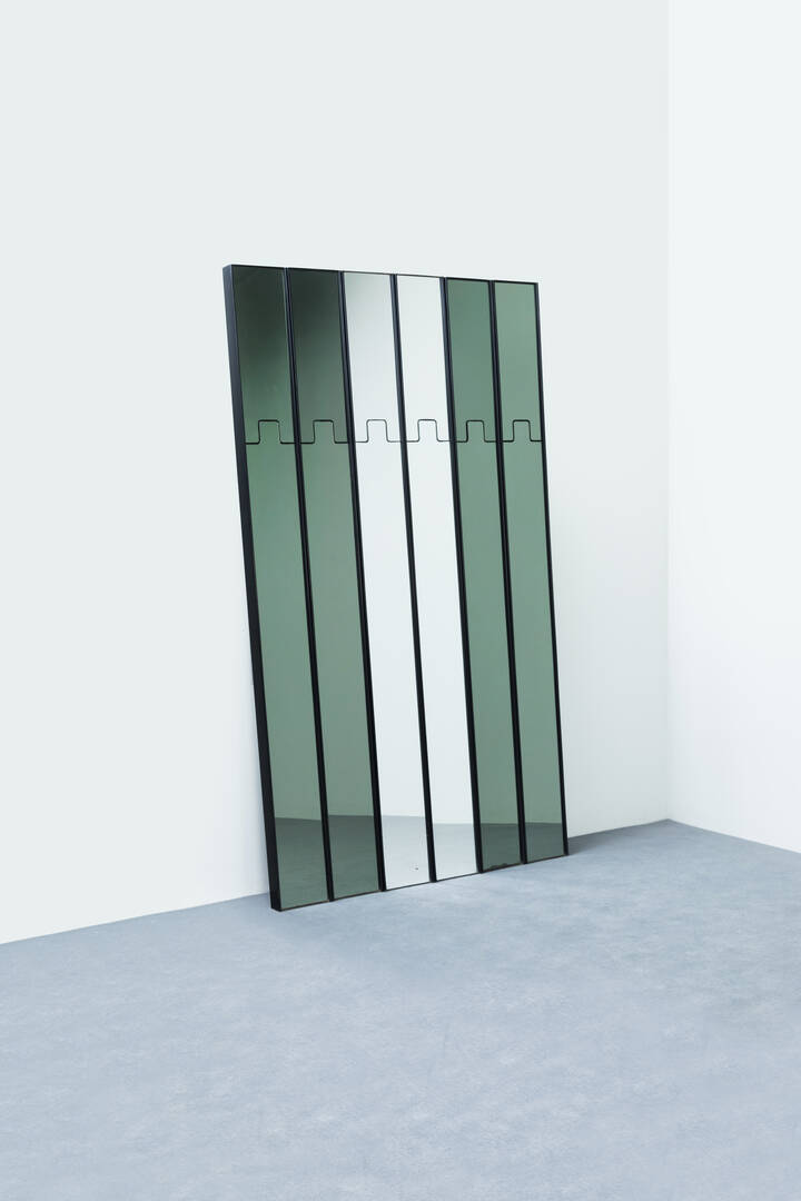 Elementi modulari rivestiti da specchi, gancio a scomparsa.