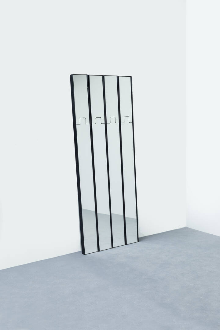 Elementi modulari rivestiti da specchi, gancio a scomparsa.