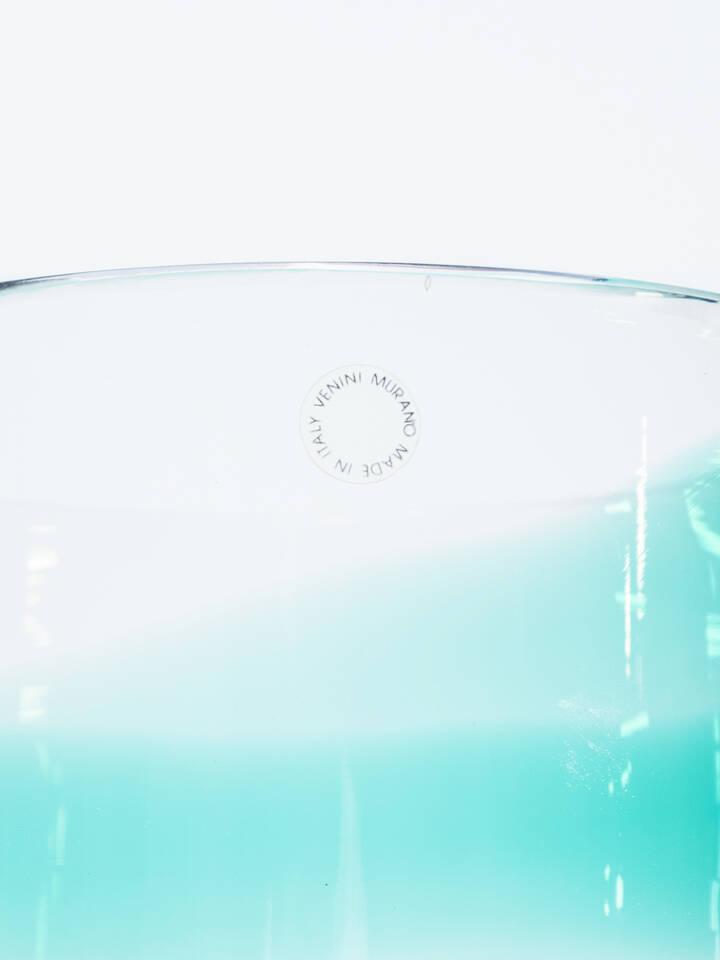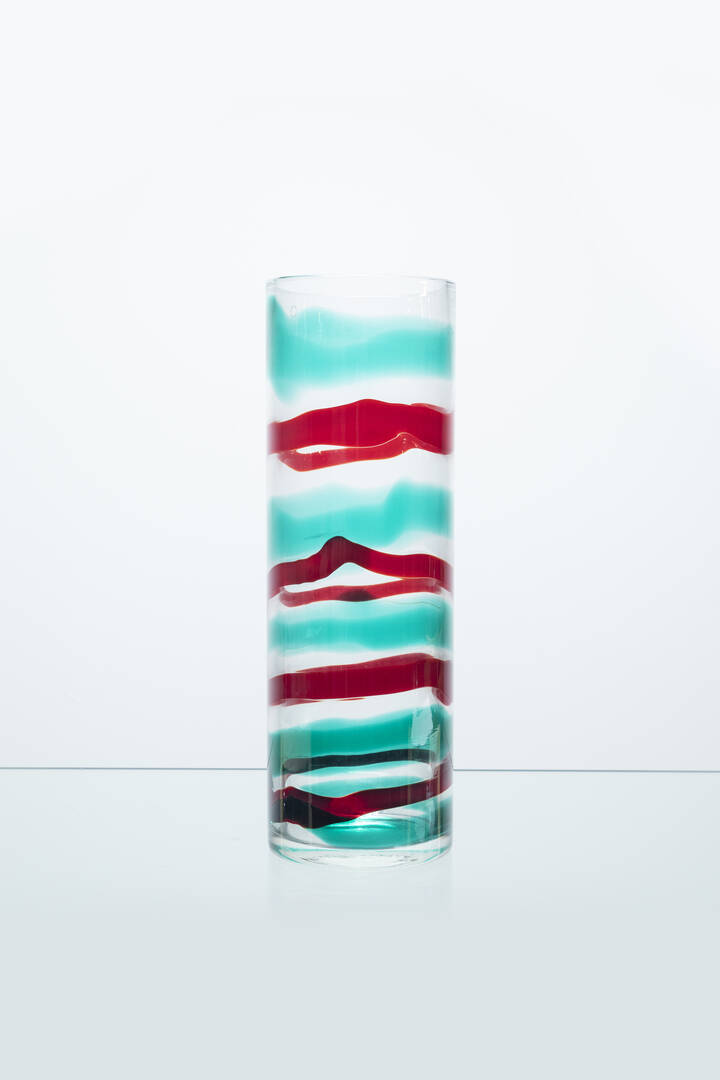 Vaso in vetro di forte spessore con fasce in vetro colorato.