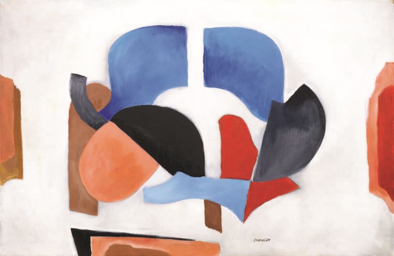 Antonio Scordia Santa Fè 1918 - Roma 1988 Lo stretto, 1972 Olio su tela, cm. 120x179,6 Firma e data in basso al centro: Scordia / 72; titolo e data al verso sulla tela: "Lo stretto" / 1972: etichetta Art Gallery / [B]anchi Nuovi.