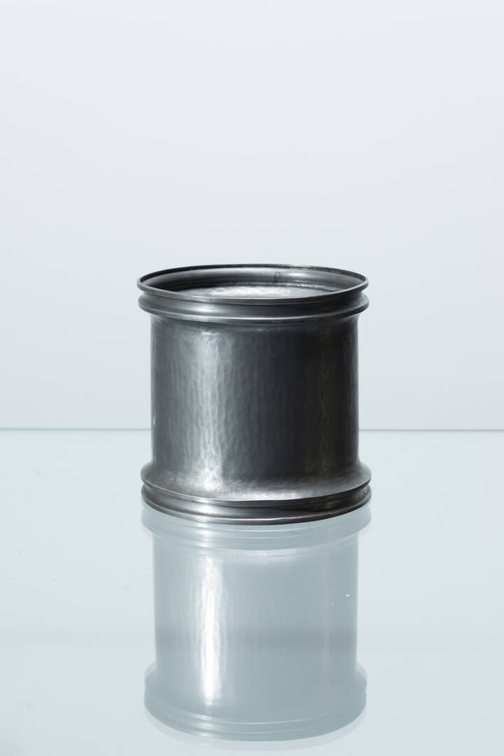 Porta vaso in peltro battuto a mano.