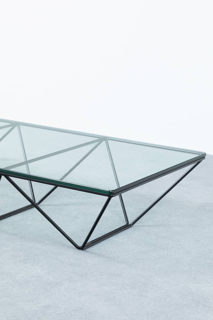 Tavolino in metallo verniciato e piano in cristallo. Anni '70
