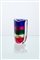 Vaso in vetro di forte spessore con fasce in vetro colorato.