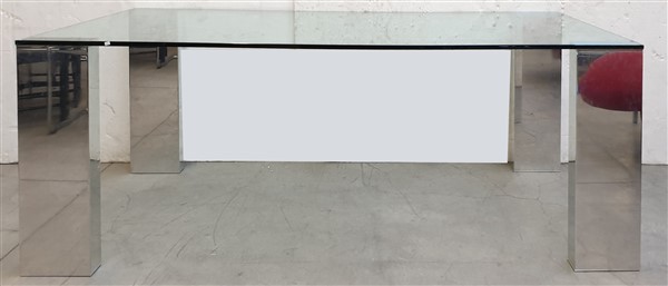 Tavolo da pranzo con gambe in alluminio estruso e piano in cristallo. Italia, produzione recente. (cm 200x73,5x100) (lievi difetti)